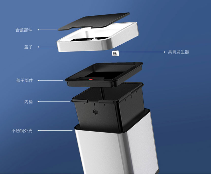 因科美W-F01智能收纳桶可以升级安装独特的臭氧发生器,可以迅速清除垃圾堆积散发的异味、臭味等气味、浮游霉菌、蠕虫等异味细菌,保持室内环境清新无害,从细节处保护全家人健康。